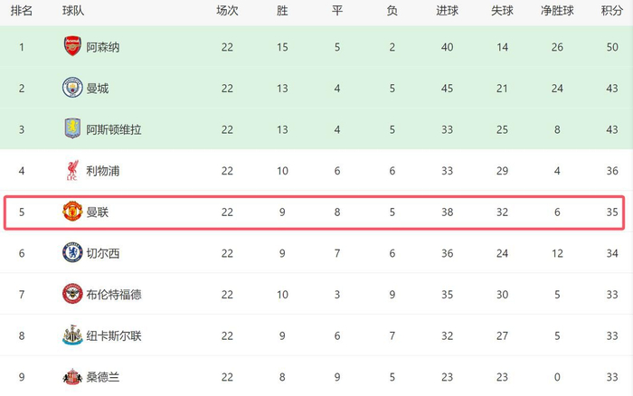 截至目前,英超已经踢了22轮比赛,如今联赛的形势已经非常明显。在积分榜上,阿森纳遥遥领先,是争冠头号热门,曼城和维拉分别落后7分,尽管争冠希望不大,但是保住前四概率很大。